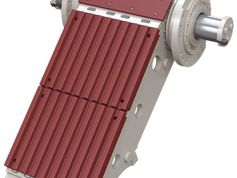 6、實現(xiàn)快速調(diào)整排料口,無論是液壓式還是機(jī)械式均可從兩側(cè)通過楔塊調(diào)整;